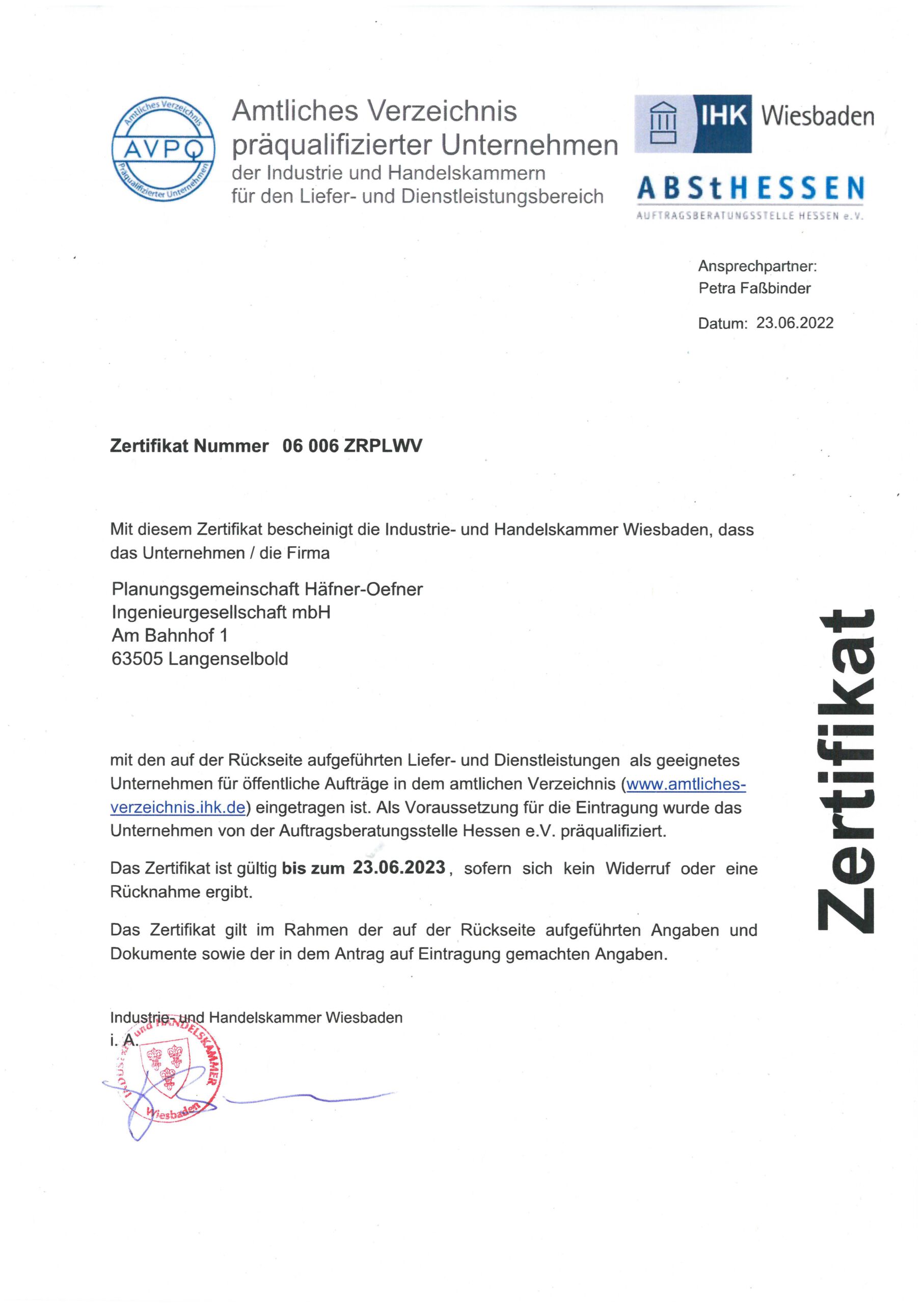 Wir freuen uns sehr, dass die kontinuierliche Bestrebung unseres Büros die hohe Planungsqualität für uns und unsere Bauherren stetig zu verbessern, durch die erfolgreiche Zertifizierung der IHK Wiesbaden bescheinigt wurde.